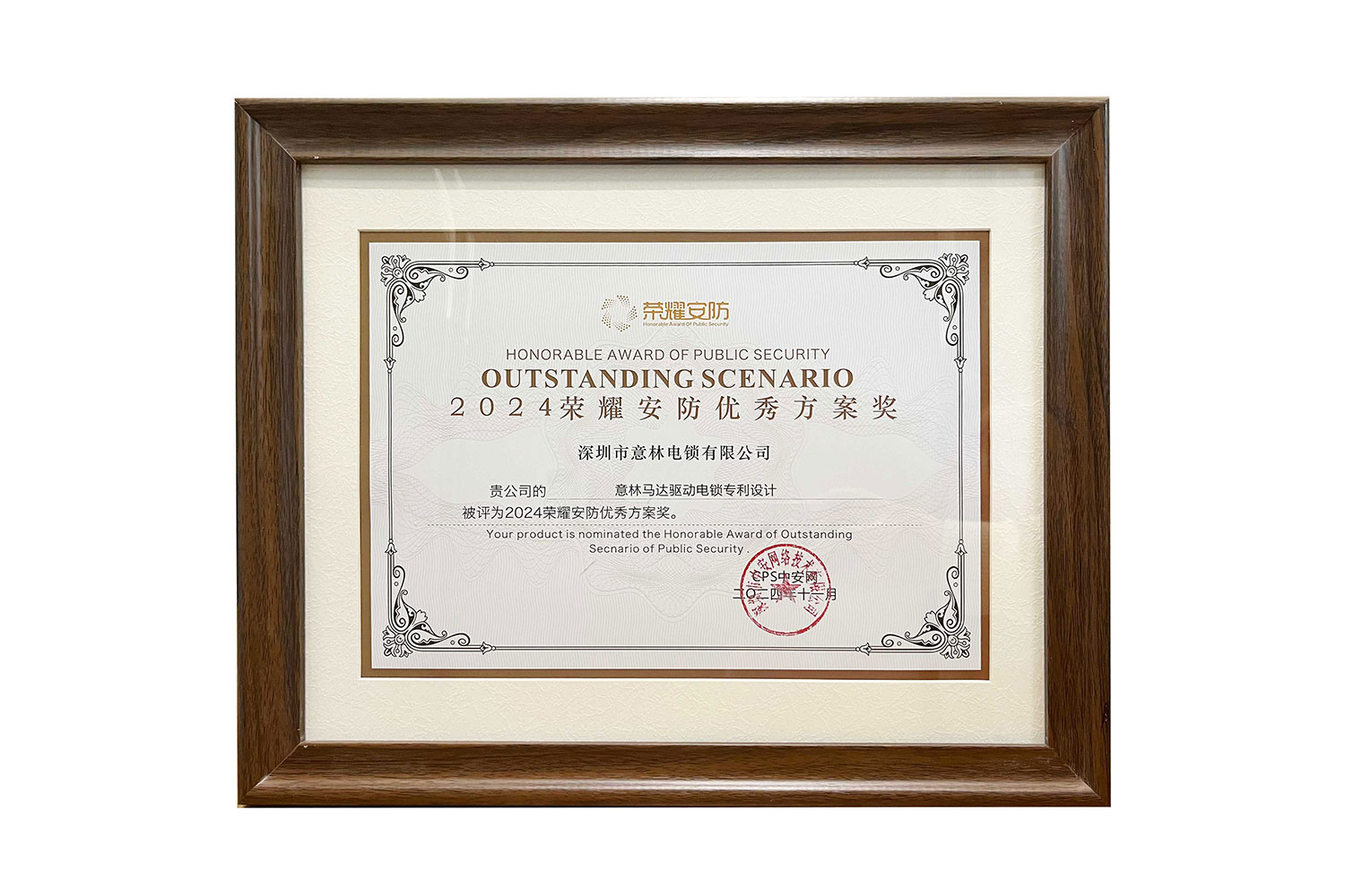 2024年度意林馬達(dá)驅(qū)動電鎖專利設(shè)計榮登 “榮耀安防2024榜單”