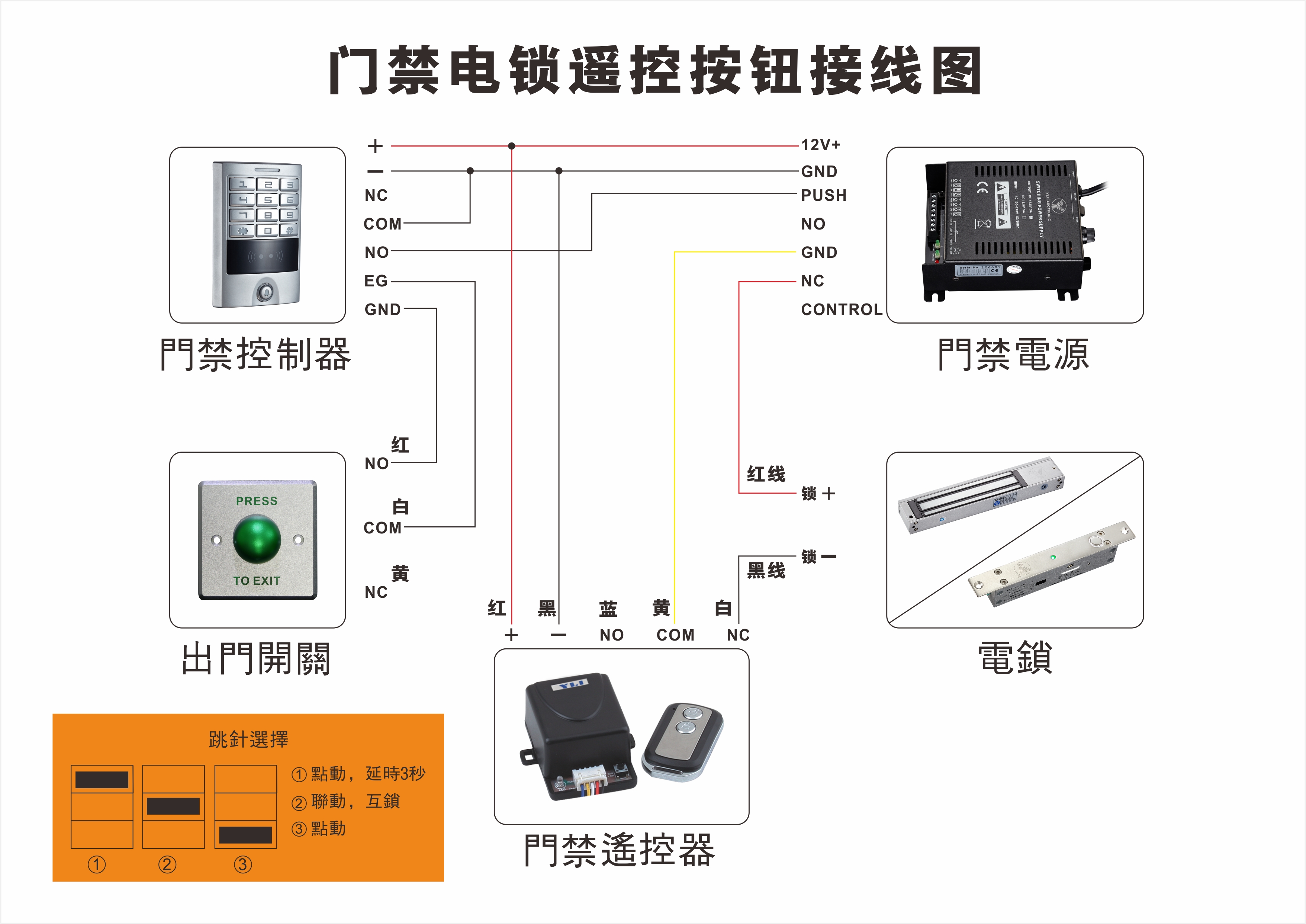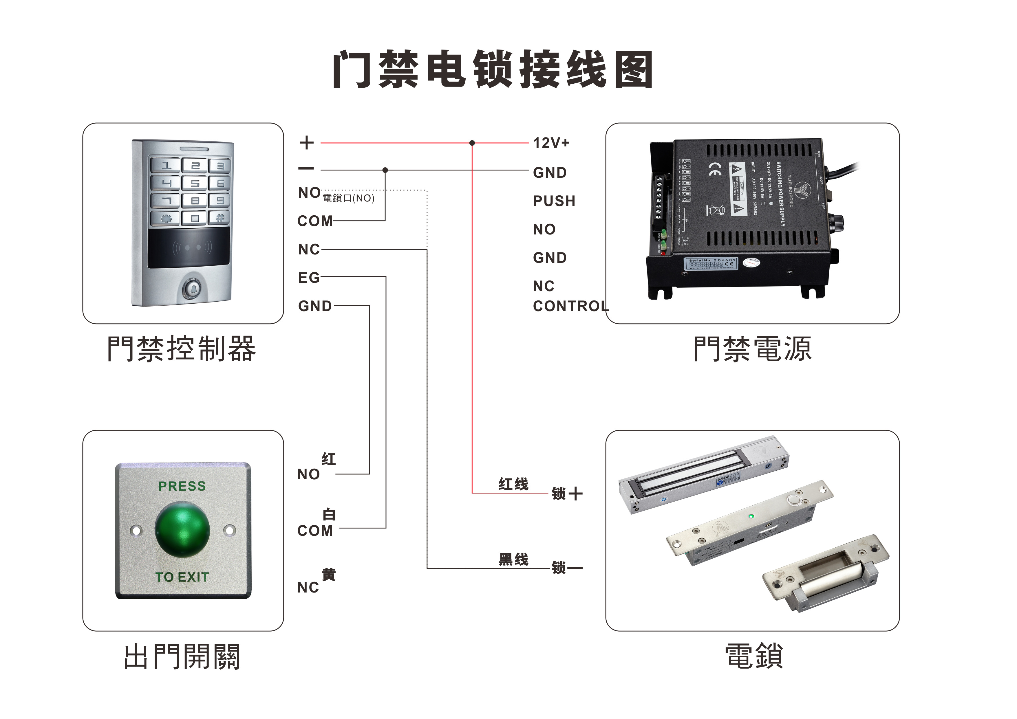 磁力鎖與警燈、玻璃破碎器、蜂鳴器接線圖