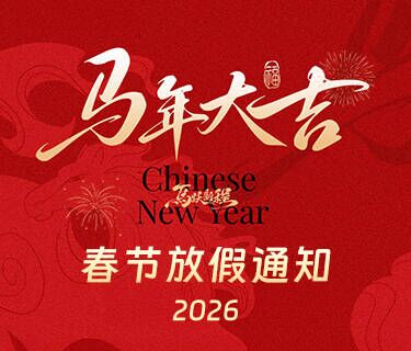 尊敬的客戶: 根據《國務院辦公廳2025年部分節假日安排通知》的規定,并結合公司實際情況,現將“春節”放假安排如下: 春節的放假時間自2026年02月13日(農歷十二月二十六)至02月27日(農歷正月十一)放假調休,共15天,2026年02月28日(農歷正月十二)正式上班。 其