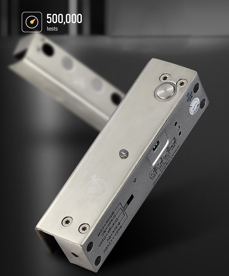 YB-500U (LED) is an all-metal construction electric bolt .specially designed for fully frameless glass doors. It can be worked bear the temperature of 60 ℃ or -40 ℃ The bolt of the lock is made of 304 stainless steel solid bar with 1000kg