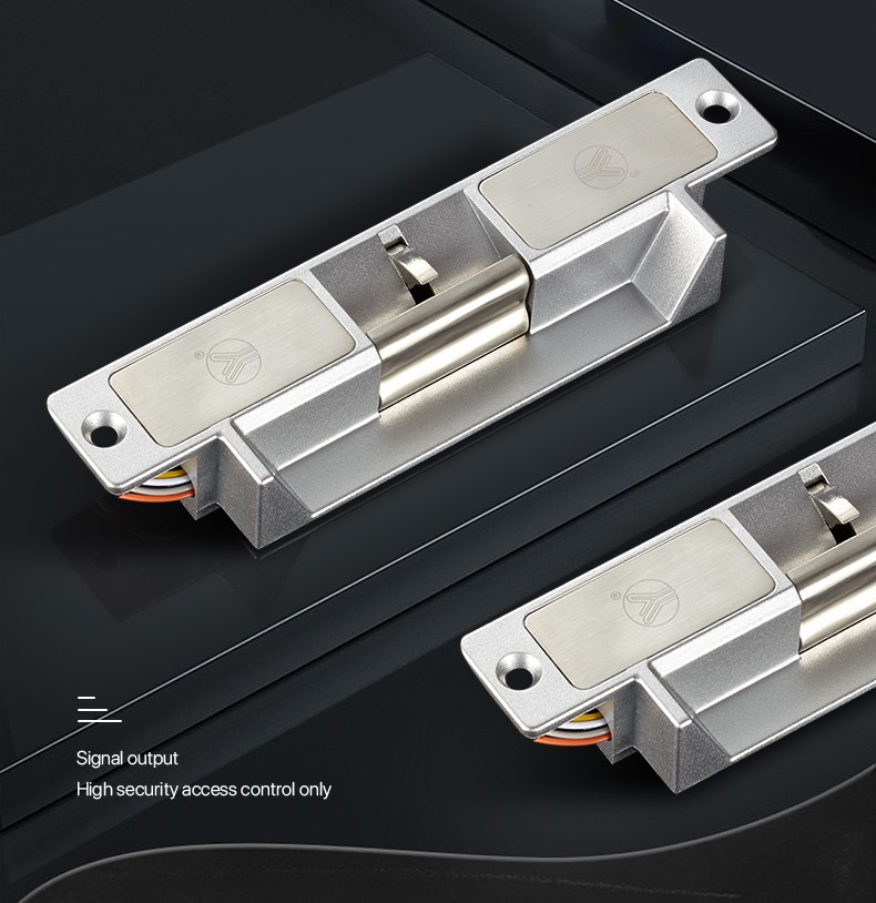 Electric strikes come in many varieties.YS-132NO/NC is the electric strike with long faceplate. It has two modes: A fail safe electric strike needs power to keep it locked. A fail secure electric strike stays locked even without power.