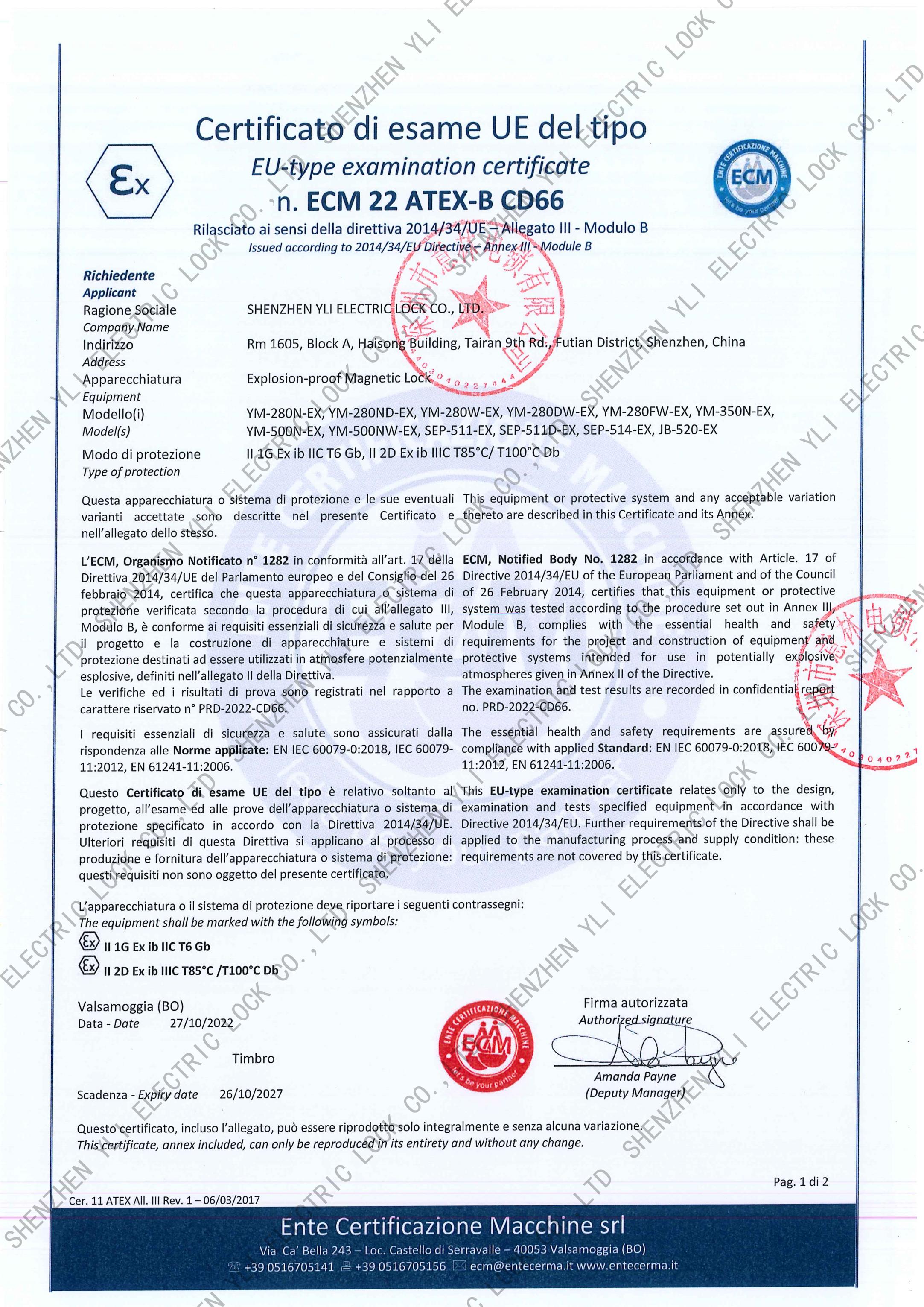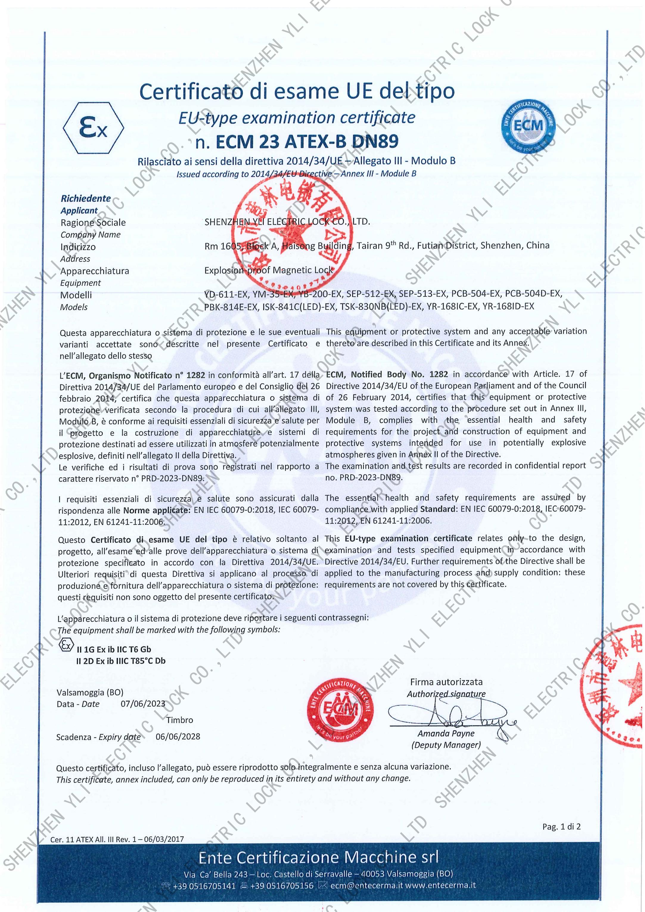 YLI products have passed the EU EN1634 EN1155 fire protection certification