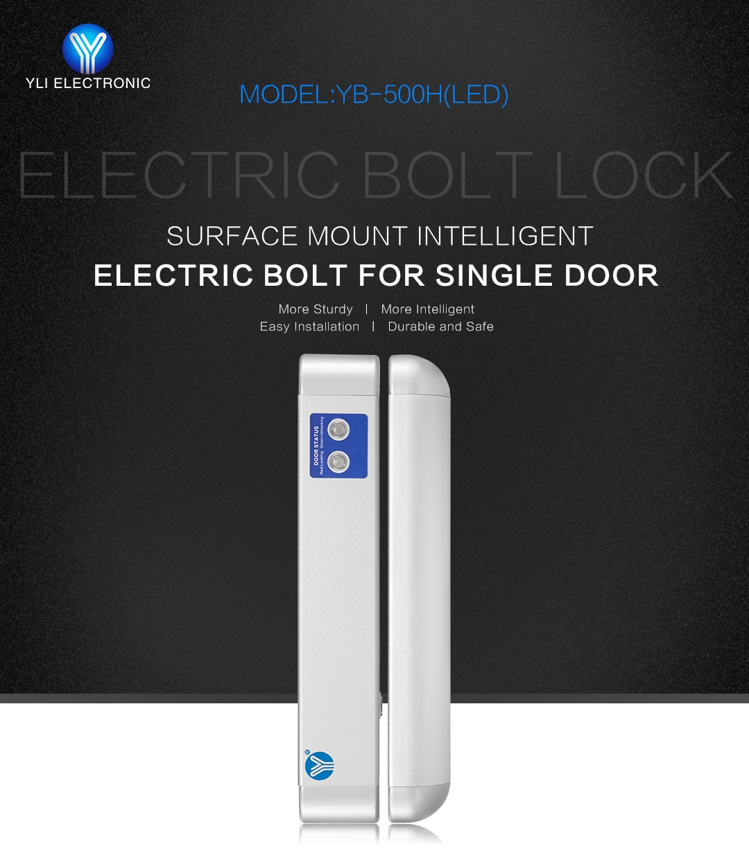 YB-500H(LED) series surface mounting intelligent electric bolt apply high-strength aluminium alloy,304 stainless steel bolt,processed by CNC,come with 1000kgs holding force and anti-theft function.