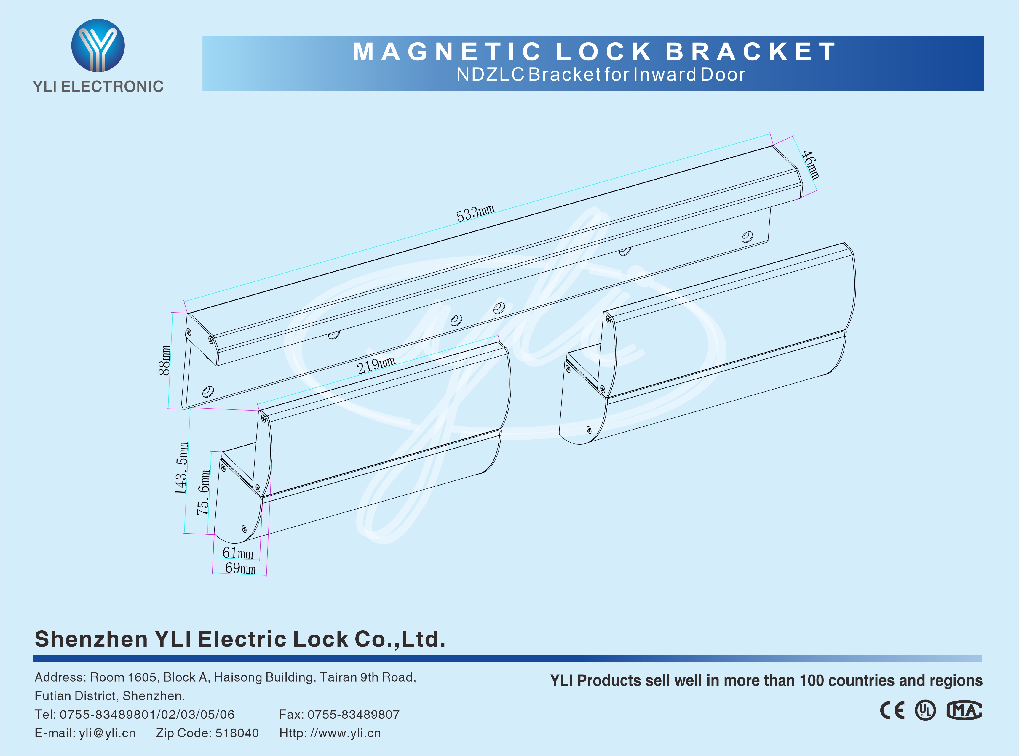 ZLC Bracket for Double Magnetic Lock and Inward Opening Door, 1. ZLC bracket is new designed bracket which can hide the wires. 2. It is used for inward door with and it is the Best Choice of Access Control.3. We have 280NDZLC for your use.