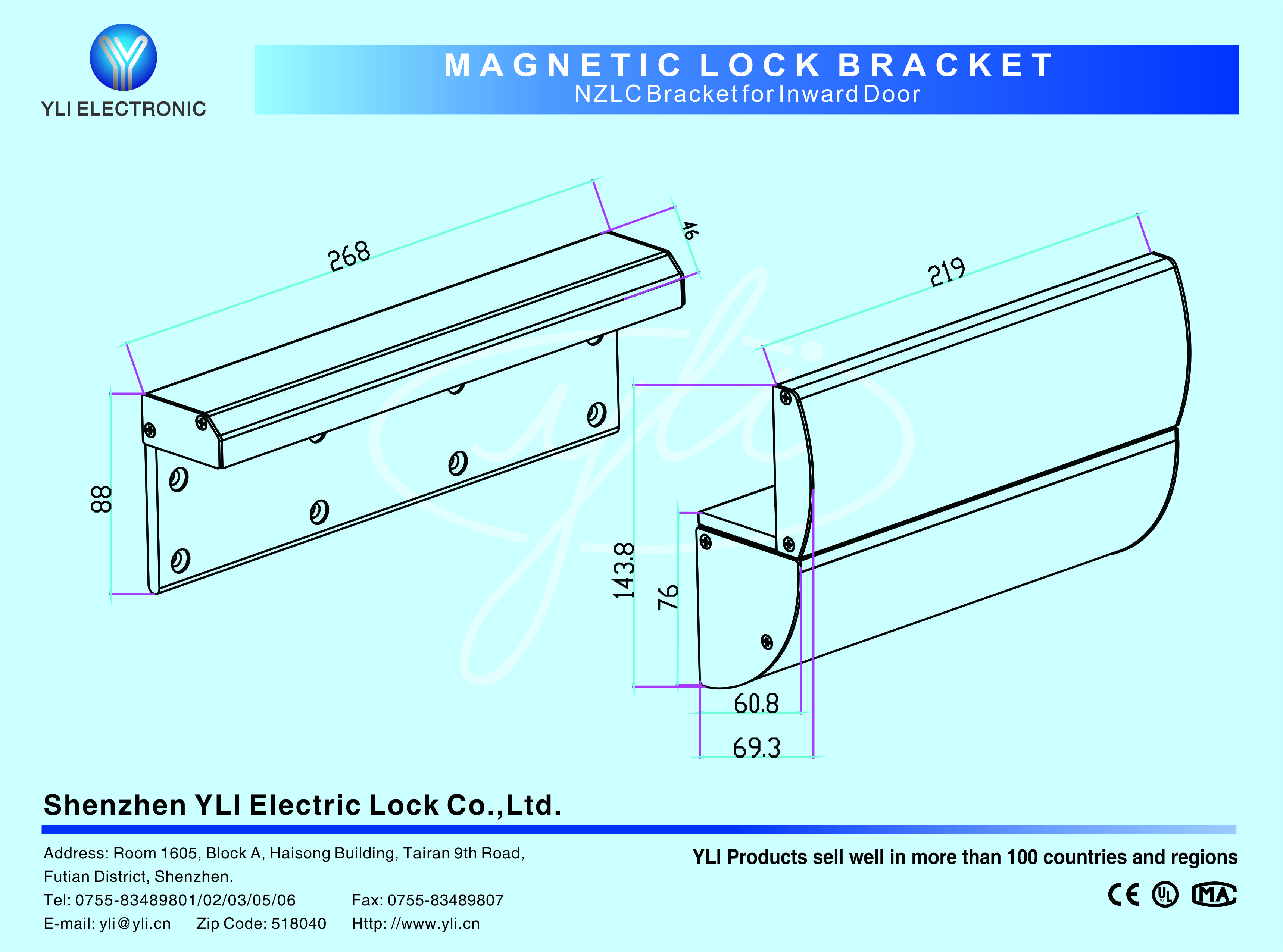 ZLC Bracket1. ZLC bracket is new designed bracket which can hide the wires. 2. It is used for inward opening door with and it is the Best Choice of Access Control.3. We have 280NZLC/500NZLC for your use.