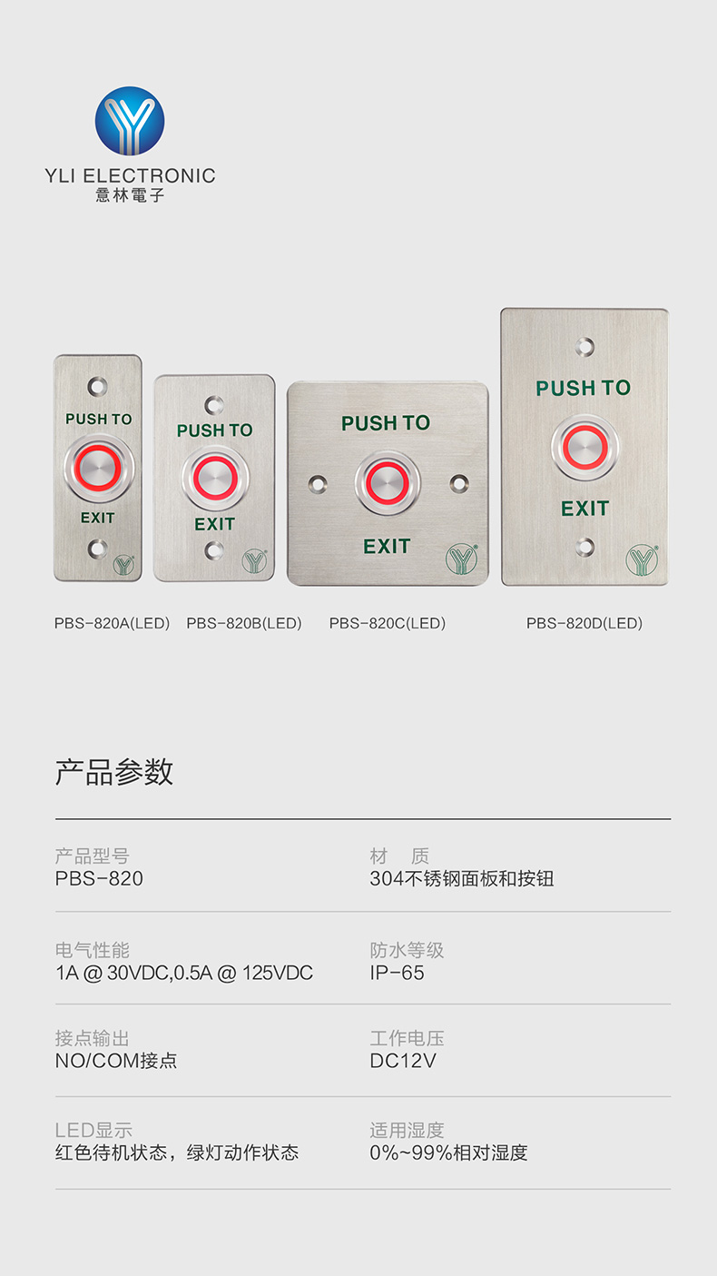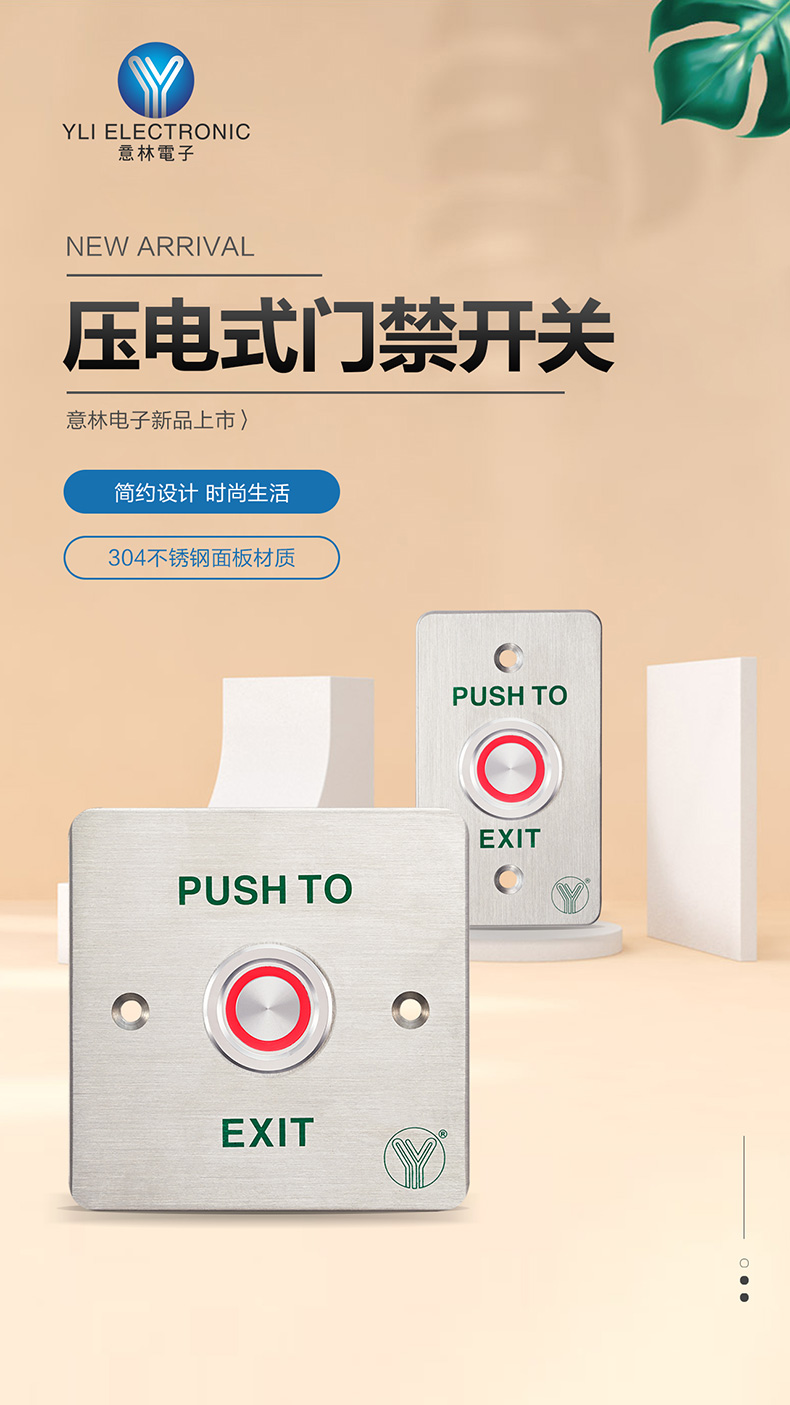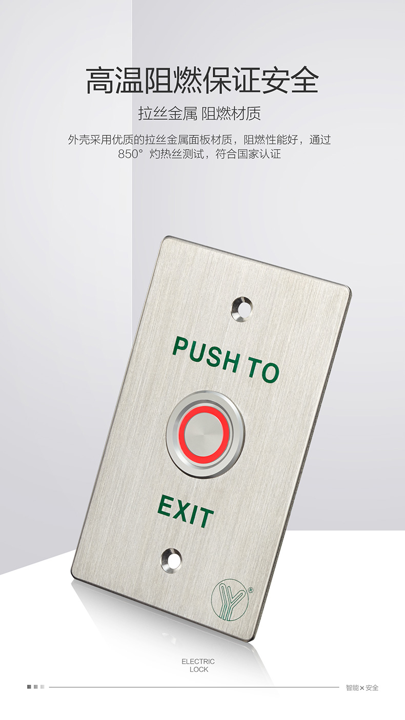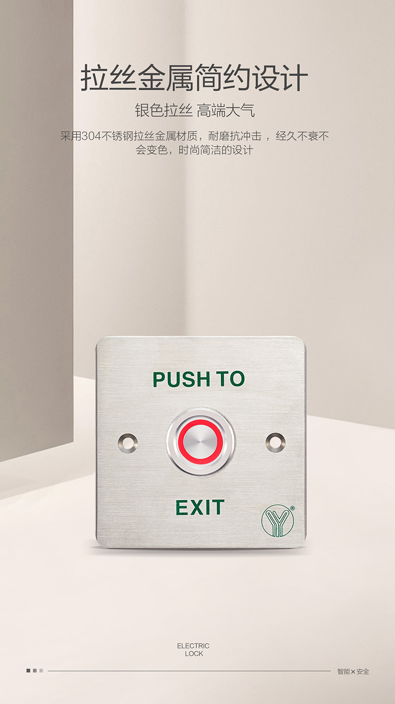 是門禁系統中最常見以及最常被使用到的,出門開關通常用于一般公家機關、銀行、大型、中小型企業以及百貨公司和住宅,外出開關系列有紅外線、觸控式、按鈕式、外出推把等。