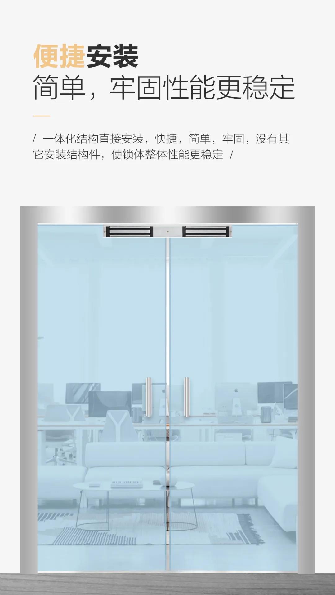 350kg標(biāo)準(zhǔn)型磁力鎖是針對(duì)一般玻璃門、木門、防火門、推拉門、金屬門設(shè)計(jì)的,內(nèi)開式門或無框玻璃門、窄框等均有附件配套,特殊防殘磁設(shè)計(jì),讓門禁自動(dòng)化更安全。