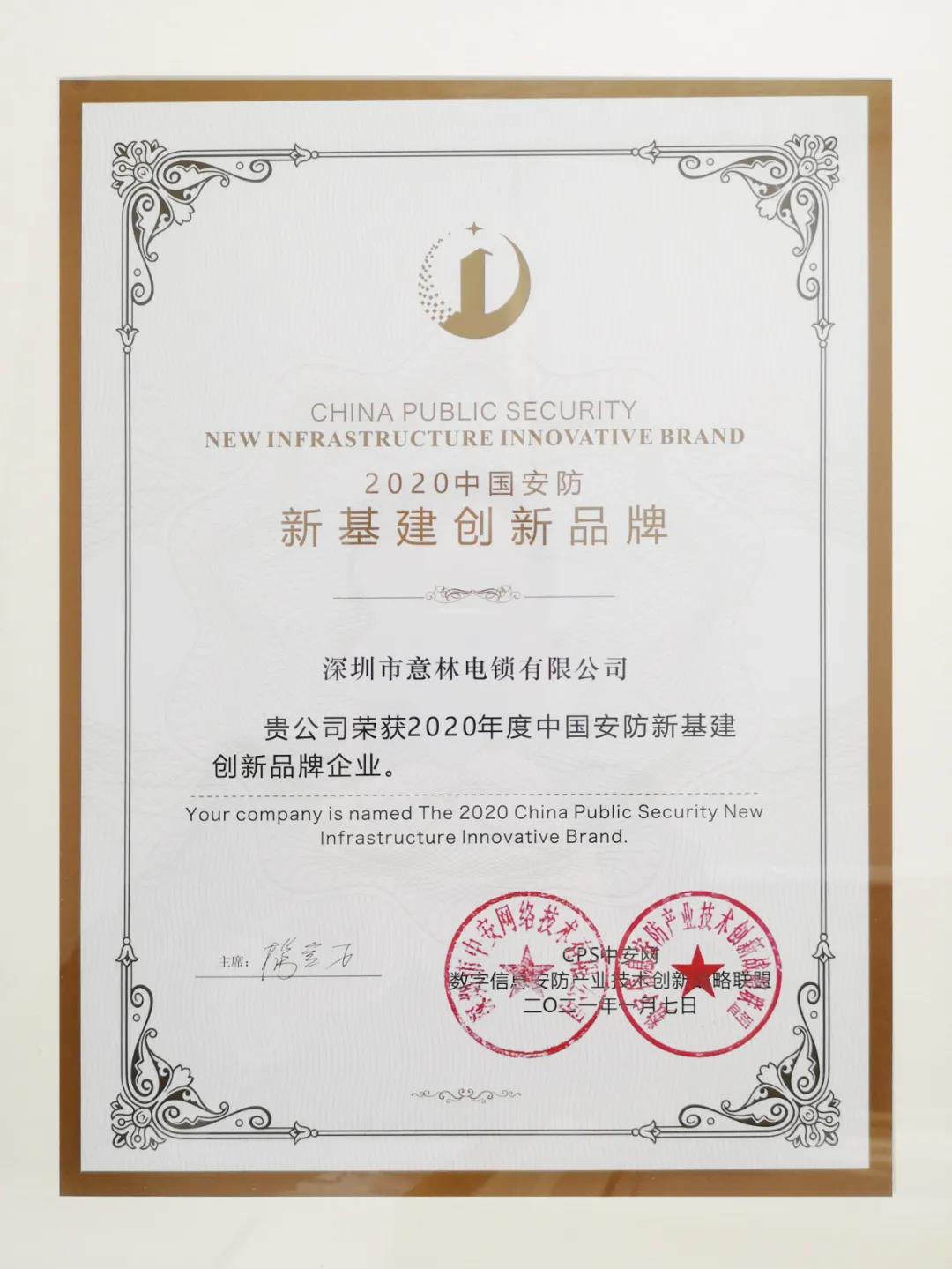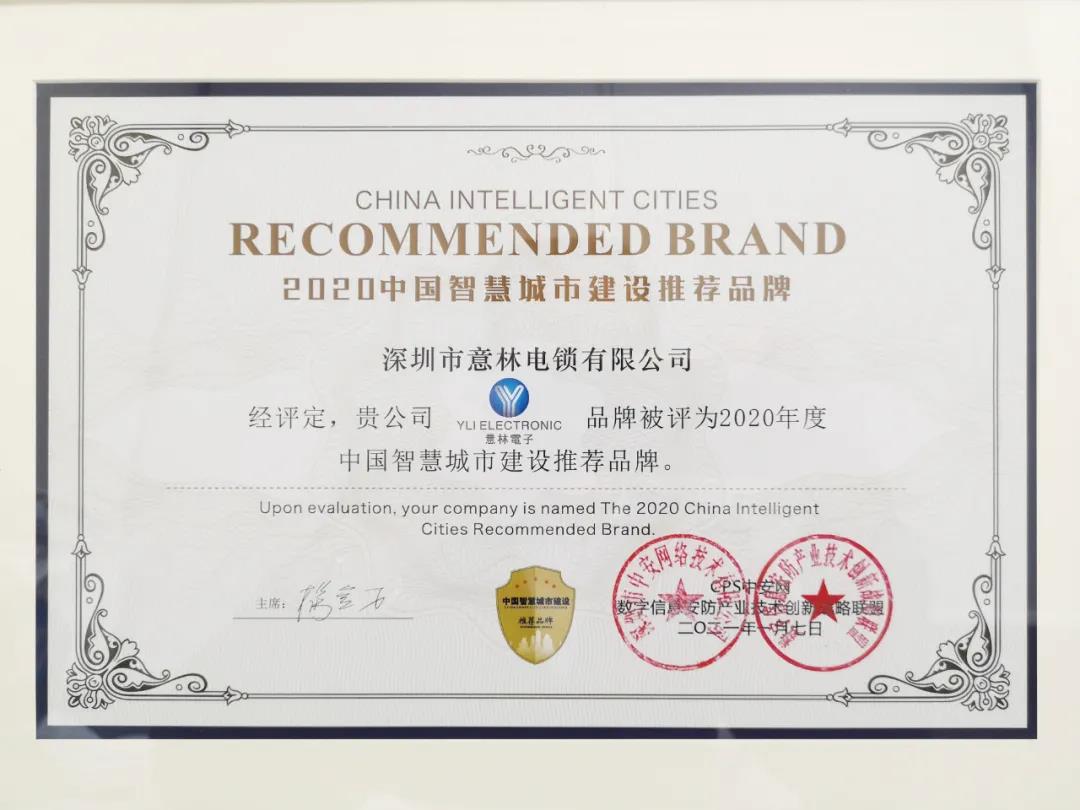 在此次大會上,深圳市意林電鎖有限公司榮獲“2020中國安防新基建創新品牌”、“2020中國智慧城市建設推薦品牌”兩項大獎,彰顯了意林電子在品牌影響力、研發生產等方面的綜合實力。