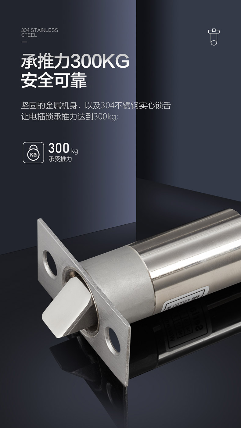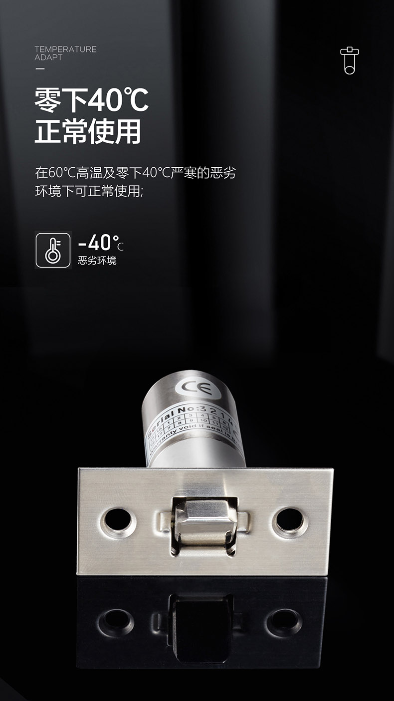 ,鎖舌采用304不銹鋼鑄造設(shè)計,連動部件經(jīng)CNC車床精工而成,設(shè)計承推力300KG撞擊。在60℃高溫及零下40℃嚴寒的惡劣環(huán)境下可正常使用,耐用電磁閥設(shè)計。可連續(xù)工作100萬次測試合格。