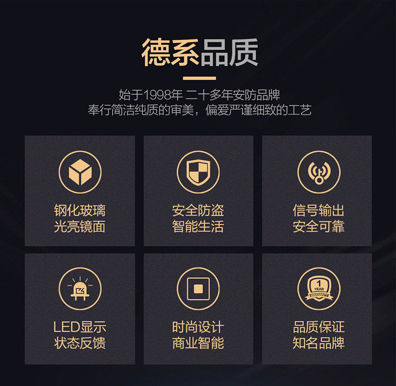 ,采用鏡面鋼化玻璃面板設(shè)計,具有優(yōu)異的觸摸性、絕緣性、延伸性、尺寸穩(wěn)定性及耐化學(xué)腐蝕性,較高的強度、耐熱性和耐寒性而廣受好評。LED轉(zhuǎn)換,時尚科技。觸摸式設(shè)計,無機械故障