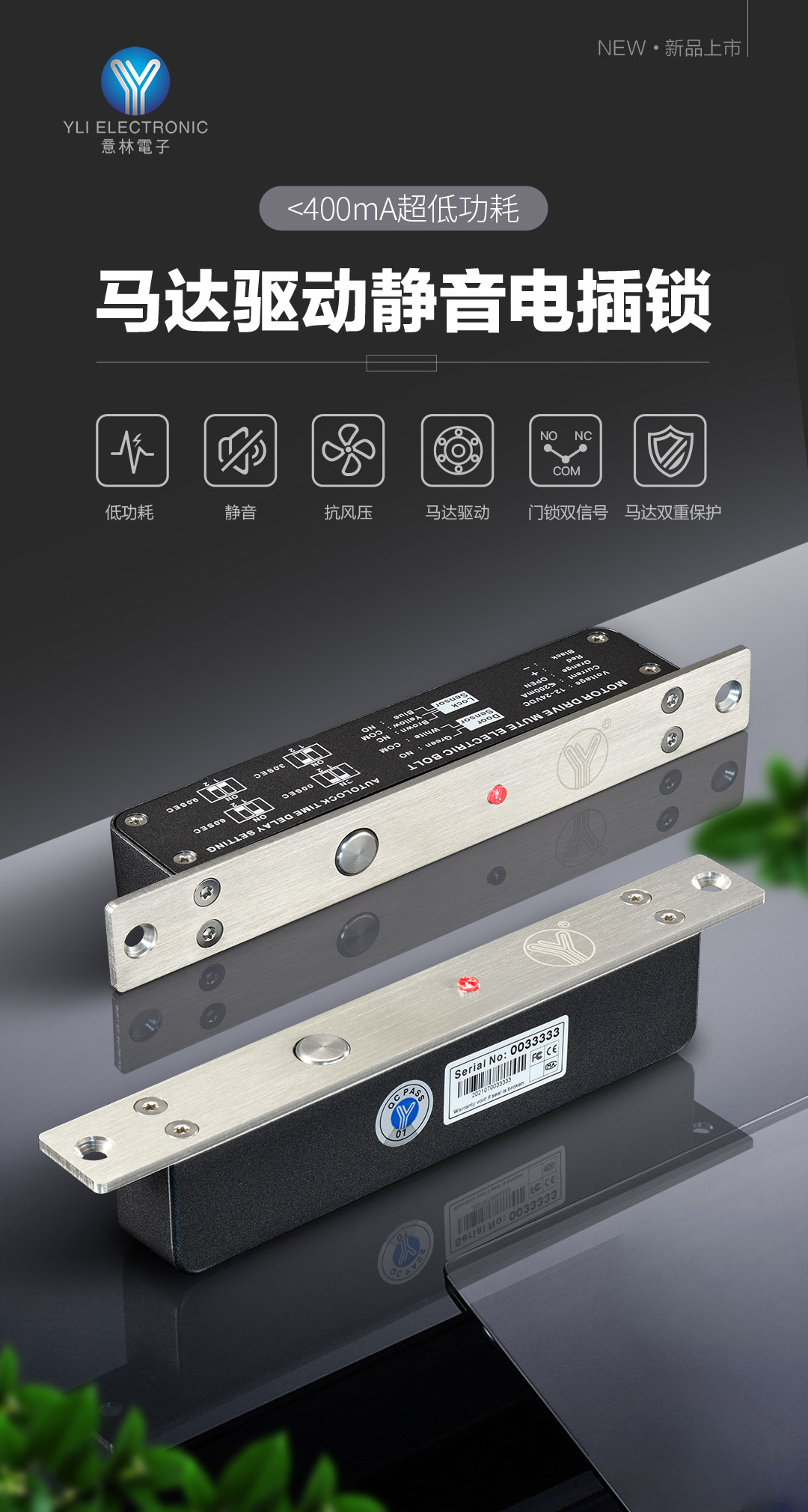 此次獲獎的YB-1300MD(LED)馬達驅動靜音電插鎖,通過減速電機驅動鎖舌伸縮,實現上鎖和開鎖功能;減速電機驅動電插鎖的銷舌伸縮的力度更大,當門扇輕微變形或偏位時,電插鎖減束電機強勁的驅動鎖舌插出,將門位拉正可實現靜音上鎖或開鎖;本電插鎖在上鎖和開鎖狀后消耗電流超低,節能環保,鎖體內部設有緊急后備節能電池,可以在停電時給電機供電驅動鎖舌自動解鎖。相比傳統的電鎖,此款產品具有靜音性、低功耗、馬達驅動,雙重保護