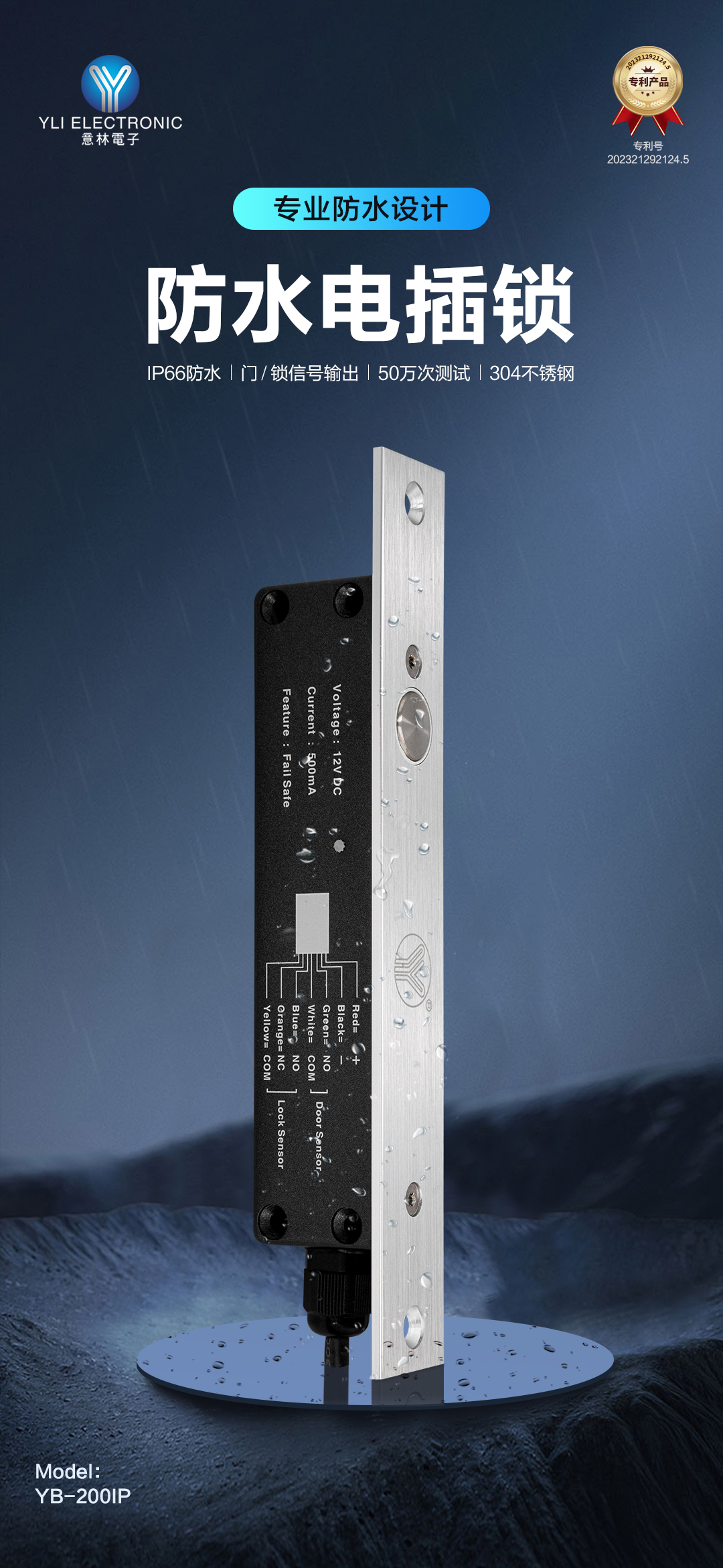 意林YB-200IP防水電插鎖