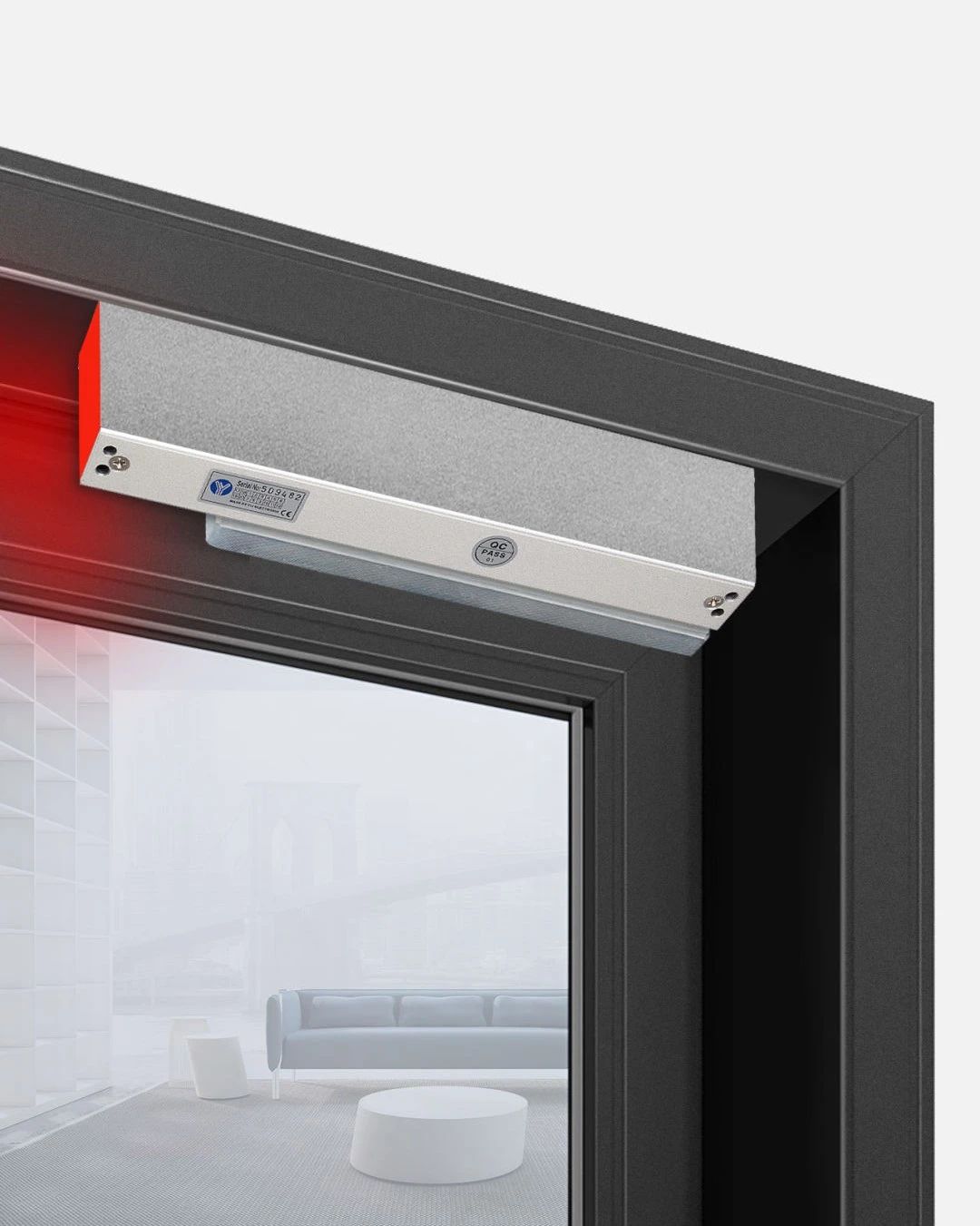 磁力鎖:磁力鎖安裝在門上,通常安裝在門框上方的橫梁上,而鎖體則安裝在門上。當磁力鎖通電時,它會吸附在鎖體上,鎖住門。