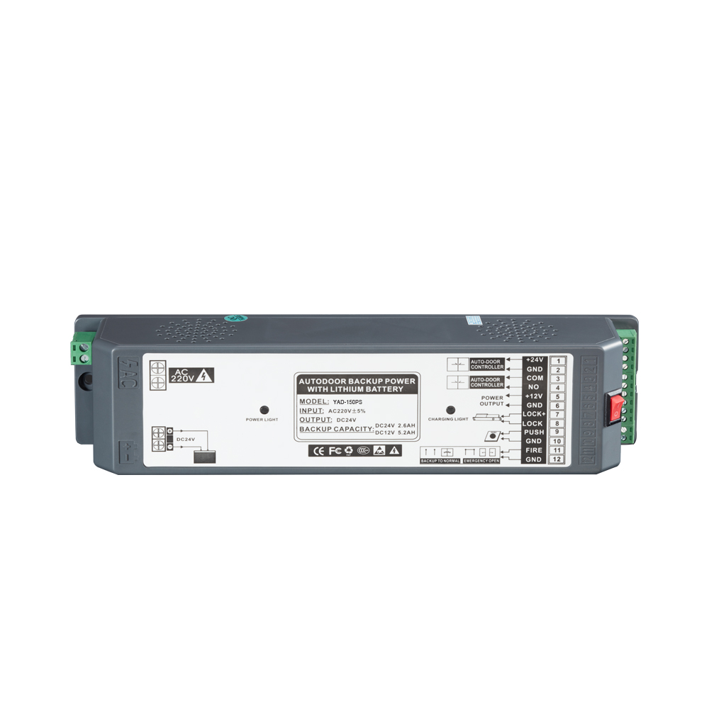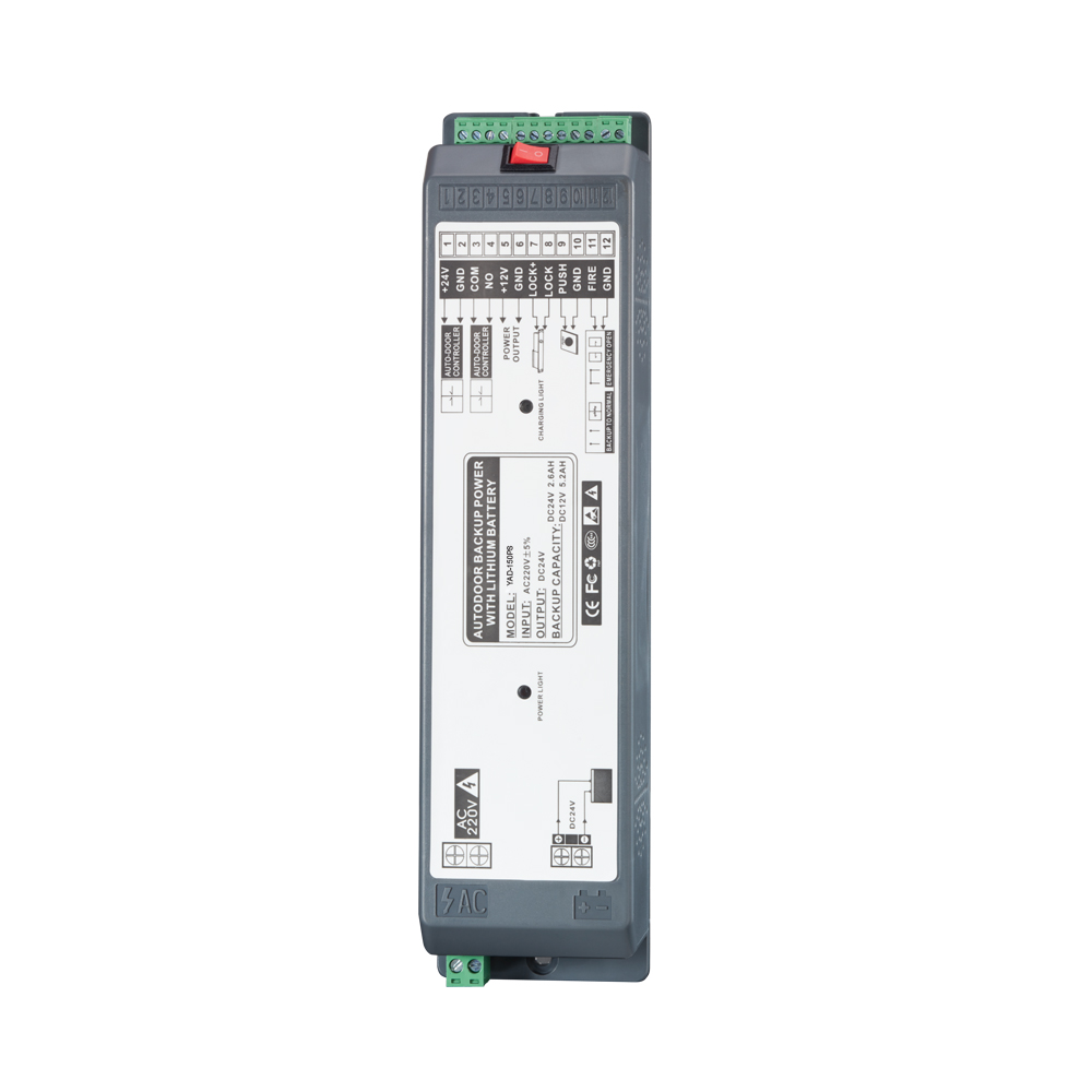 對鋰電子采用微電腦放電管理,設有快速充電(紅燈快閃)、涓流充電(紅燈慢閃)及低電壓自動切斷等充放電技術,使得蓄電池的壽命大大提高,當處于蓄電池供電時,藍燈閃爍。集成了門禁電源功能,非常適用于自動門要裝門禁控制的場合,有效解決以往自動門裝一套后備電源,門禁單獨裝一套后備電源的繁瑣控制方案。