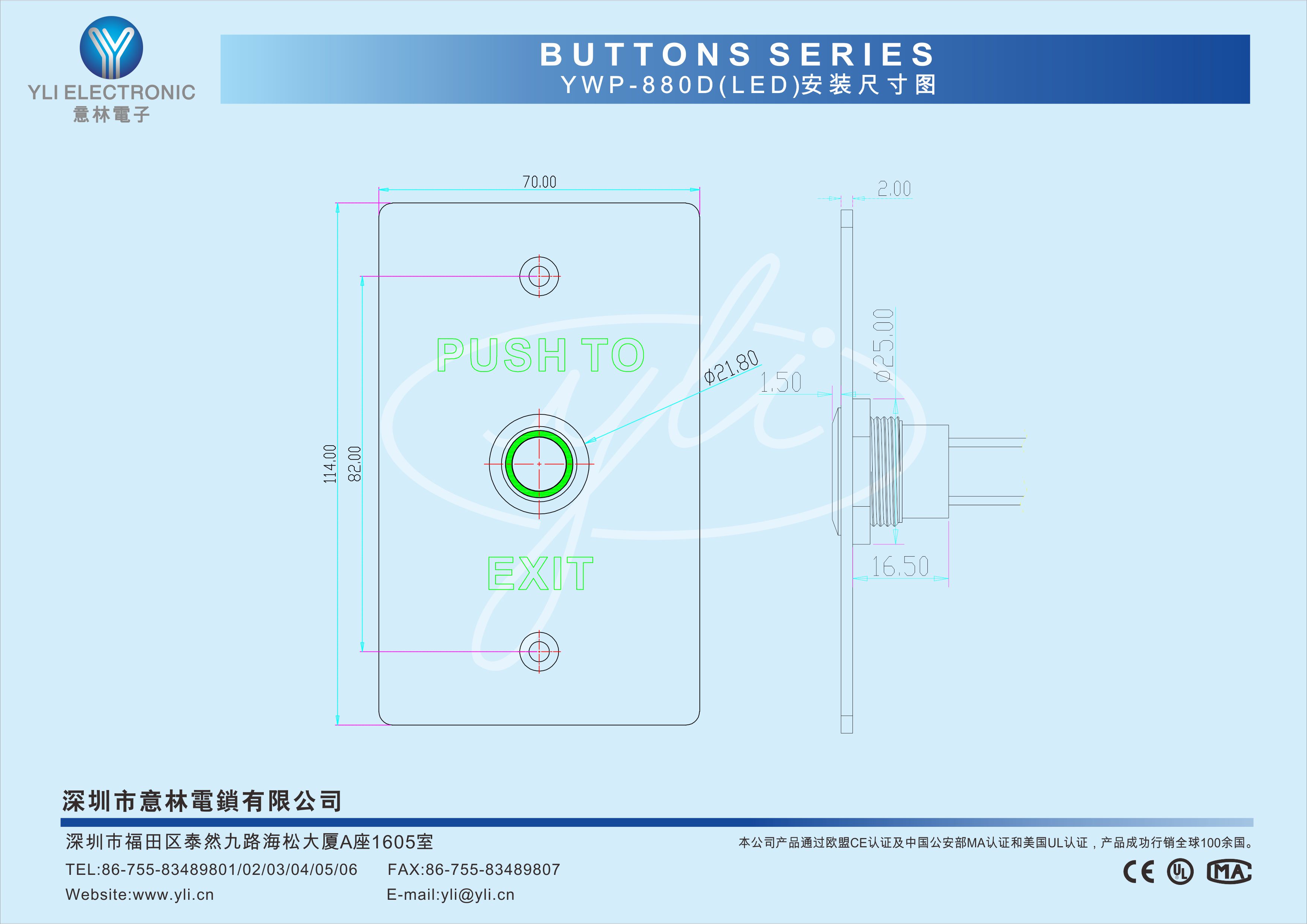 專用設計,防水、防塵,無機械故障100萬次測試合格耐用度多接點輸出,適合不同類型電鎖要求高級門禁系統指定配套產品