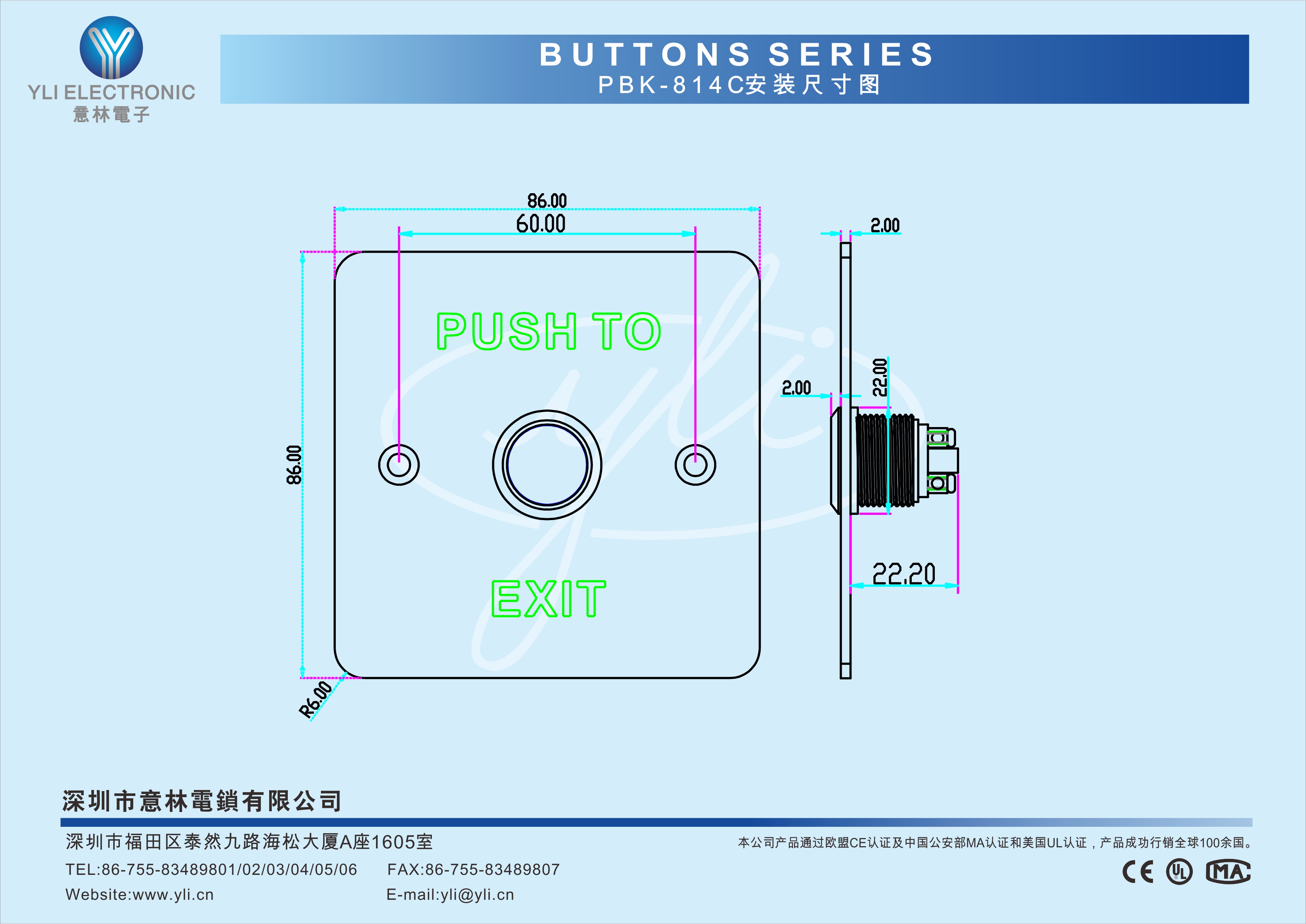 專用設計,無機械故障豪華型不繡鋼面板,美觀耐用五十萬次老化測試合格多接點輸出,適合不同類型電鎖要求高級門禁系統指定配套產品