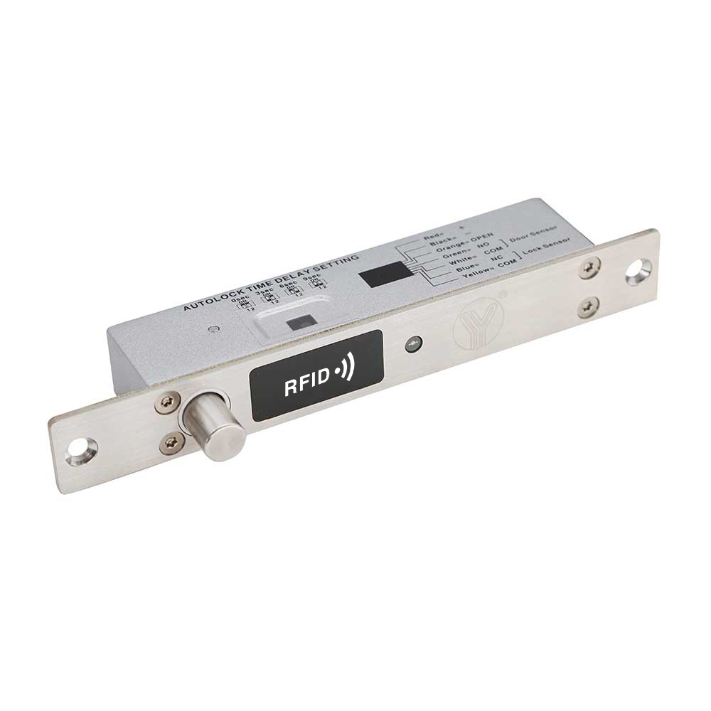YB-500B(LED)-VEM-RFID是一款采用RFID技術(shù)的耐用型自助售貨機專用電插鎖,通過識別 RFID卡片信息實現(xiàn)上鎖,門閂板使用RFID卡片代替磁鐵片,鎖體貼的序列號與門閂板貼的序列號對應的唯一識別特性,有效解決傳統(tǒng)磁感電插鎖容易被騙鎖的問題及提高了安全性。鎖舌采用整體式304不銹鋼實芯棒材,經(jīng)CNC車床精而成,可承受950kg靜態(tài)沖擊力, 鎖舌插出后防撬功能設(shè)計,連動部件全部采用金屬結(jié)構(gòu),在60℃高溫及零下20℃嚴寒的惡劣環(huán)境可正常使用,專業(yè)耐用型電磁閥,特殊光電控制超低溫及超低功耗設(shè)計,防入侵電路及專為自助售貨機閉環(huán)管理的智能邏輯電路設(shè)計等。是市場上自助售貨機專用的安全,耐用,可靠的最佳電鎖。