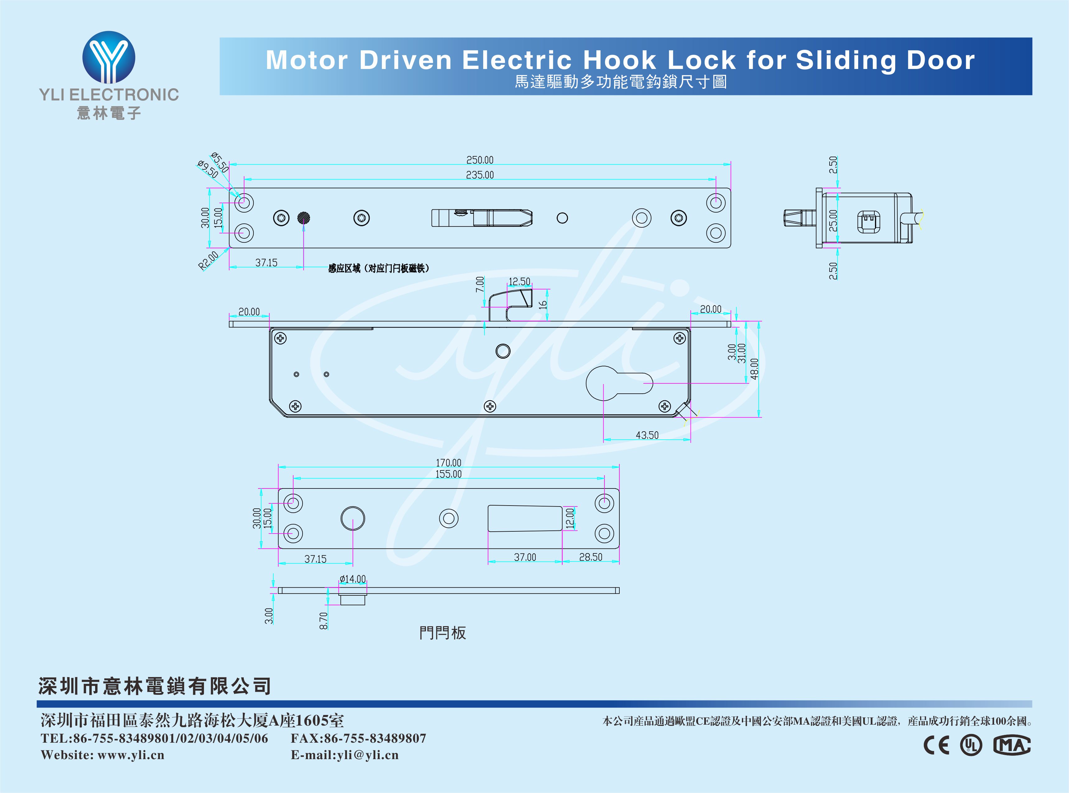 馬達驅動平移門電鉤鎖具有防脫鉤設計,防止抬門及防撬功能