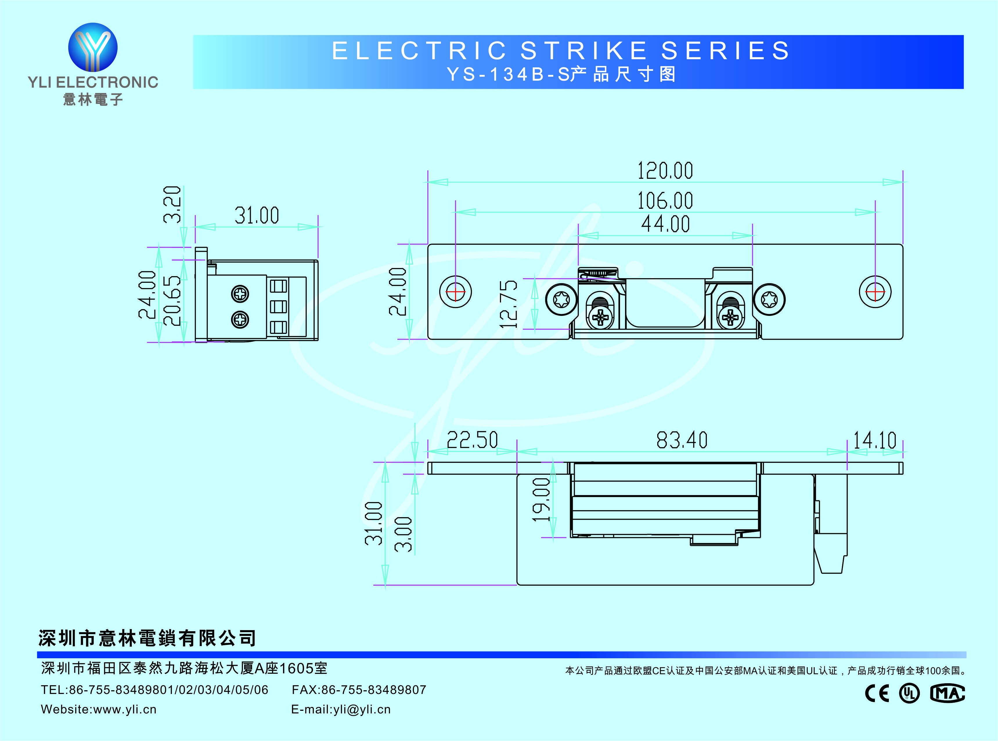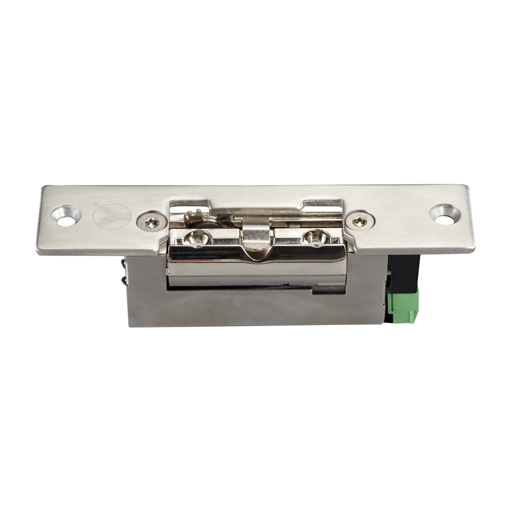 YS-134-S/134B-S 是一款窄框型可調帶撥桿歐式電鎖口,是針對窄框木門、窄框金屬門等設計的。鎖舌采用鋅合金壓鑄,面板304不銹鋼材質,堅固耐用,承受300kg推力。斷電上鎖安全類型。特點:調節鎖體上的機械撥桿,使電鎖口一直處于開鎖狀態(在通/斷電時都保持開鎖狀態)。這款電鎖口具有一組NO,NC,COM門信號輸出。