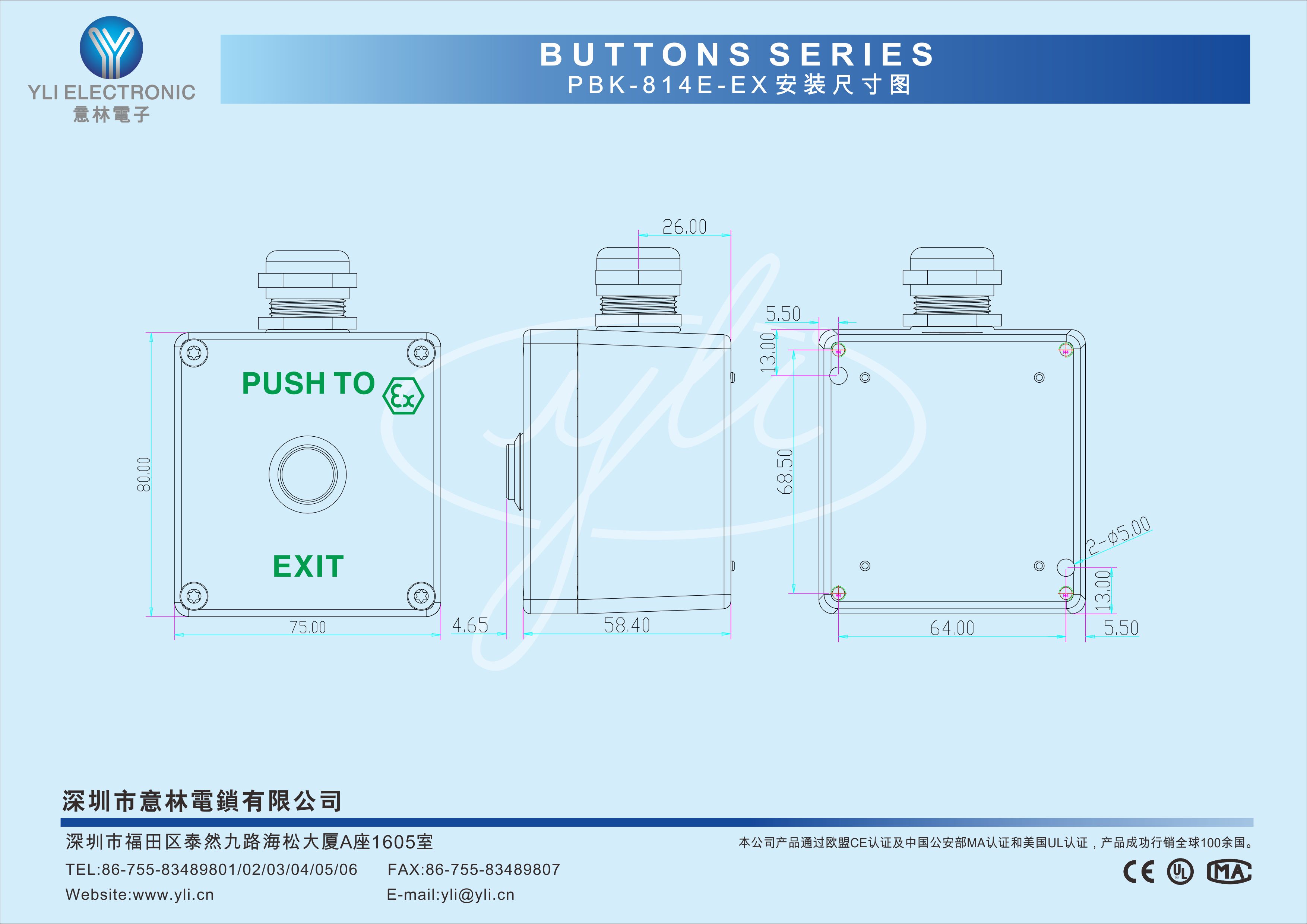 PBK-814E-EX 按壓式防爆門禁開關,是一種能夠使用在爆炸性氣體及粉塵環境中采用澆封防爆型式的門禁開關。嚴格按照國家標準 GB/T3836.1-2021【爆炸性環境 第 1 部分 設備 通用要求】GB/T3836.4~2021【爆炸性環境 第4部分:由本質安全型“i”保護的設備】及GB/T3836.9-2021【爆炸性環境 第 9部分 由澆封型“m”保護的設備】中的有關規定設計和生產制造,產品經國家指定的防爆產品檢測機構檢驗合格,并持有防爆合格證備查。安裝在危險區的門內側,連接防爆門禁設備,用于防爆門禁出門使用。符合CNEX國家防爆標準,嚴格的生產及工藝流程,確保每件產品安全堅固、耐用。防爆開關采用完全密封設計,IP66防護等級。廣泛應用于: 石油石化、化工、油庫、輪船、鉆井平臺、加油站、港口、航天、軍工、醫藥、鋼鐵、工廠、機械糧食加工存儲等爆炸性危險環境。在使用本產品前請認真閱讀以下內容,以保證您能正確使用,避免因不當使用和操作引起或可能產生安全事故,敬請留意。
