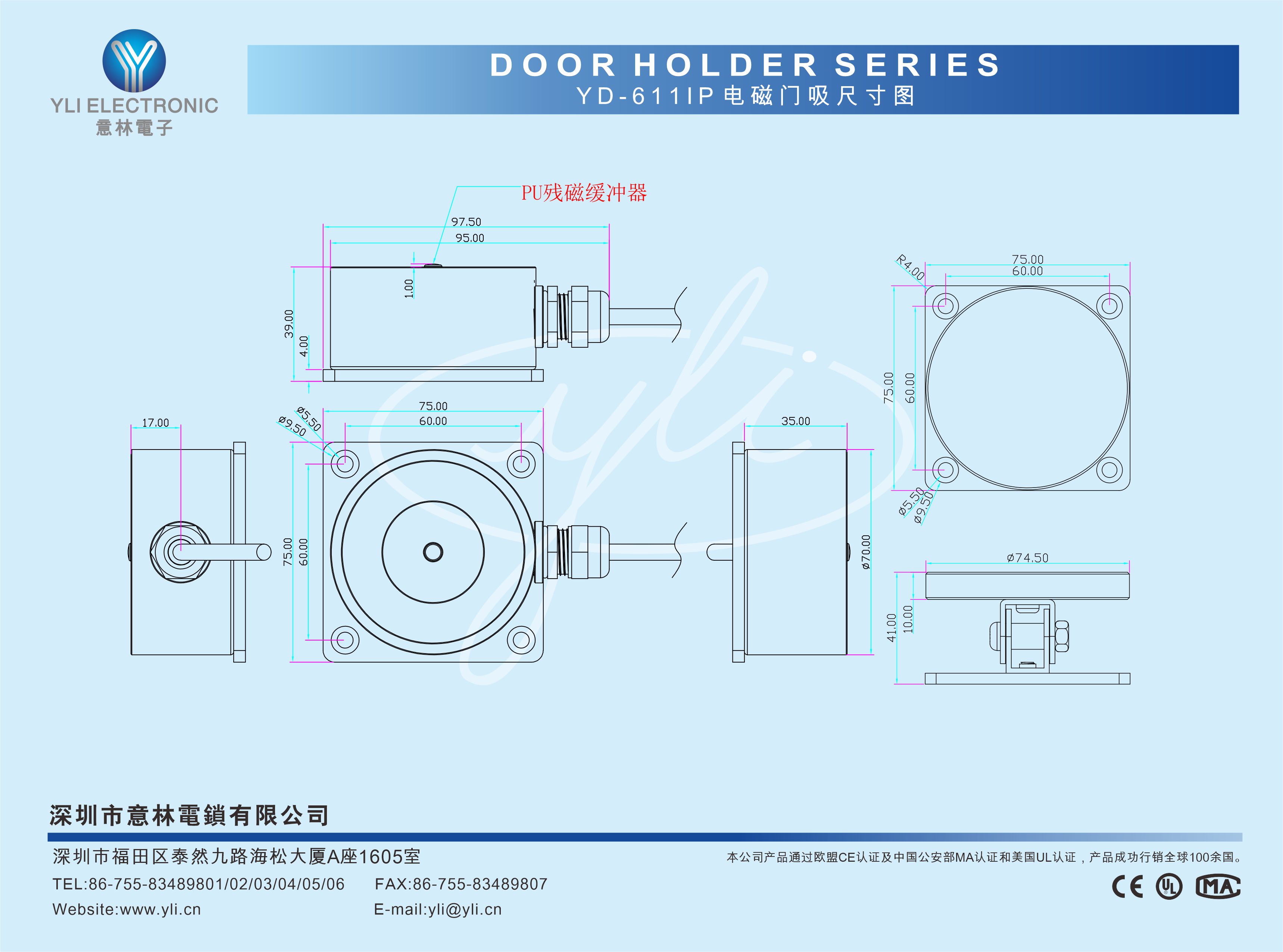 YD-611IP是墻壁式防水型電磁門吸,防水等級IP68,拉力150kg,表面處理采用國際頂級的電鍍工藝,通過國家雙C實驗室500小時鹽霧測試合格,廣泛應(yīng)用于戶外建筑設(shè)施,輪船、核電站、港口、碼頭、地鐵站等潮濕或露天場所使用。專業(yè)防殘磁設(shè)計,使得更安全耐用。