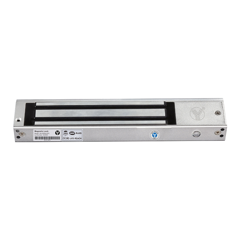 YM-280N(LED)是一款標(biāo)準(zhǔn)規(guī)格的單門磁力鎖附鎖信號輸出,專為滿足木門、金屬門、玻璃門、防火門等而設(shè)計。內(nèi)設(shè)有 一組鎖狀態(tài)信號(NO/NC/COM)輸出接點為門禁系統(tǒng)實時反饋信息,鎖體設(shè)有加大LED燈顯 示,綠燈時開鎖狀態(tài),紅燈時上鎖狀態(tài)。意林磁力鎖加大電磁吸力設(shè)計,吸力超強,鎖芯特殊加強焊接工藝,抗撞擊力及抗扭力比常規(guī)焊接工藝強2-3倍,更堅固耐用。表面處理采用國際領(lǐng)先的電鍍工藝,通過國家實驗室240小時鹽霧測試,達(dá)到防氧化、防銹、防腐性能。廣泛應(yīng)用于日常辦公場景或沿海鹽霧,潮濕(如:地鐵,機場,核電站,跨海大橋,港口碼頭,醫(yī)療機構(gòu),沿海城市建筑)等場景使用。本公司產(chǎn)品規(guī)格及配套齊全,內(nèi)開式門或無框玻璃門、窄框門等均有安裝支架配套,有效滿足現(xiàn)代智能建筑的各種場景需求。