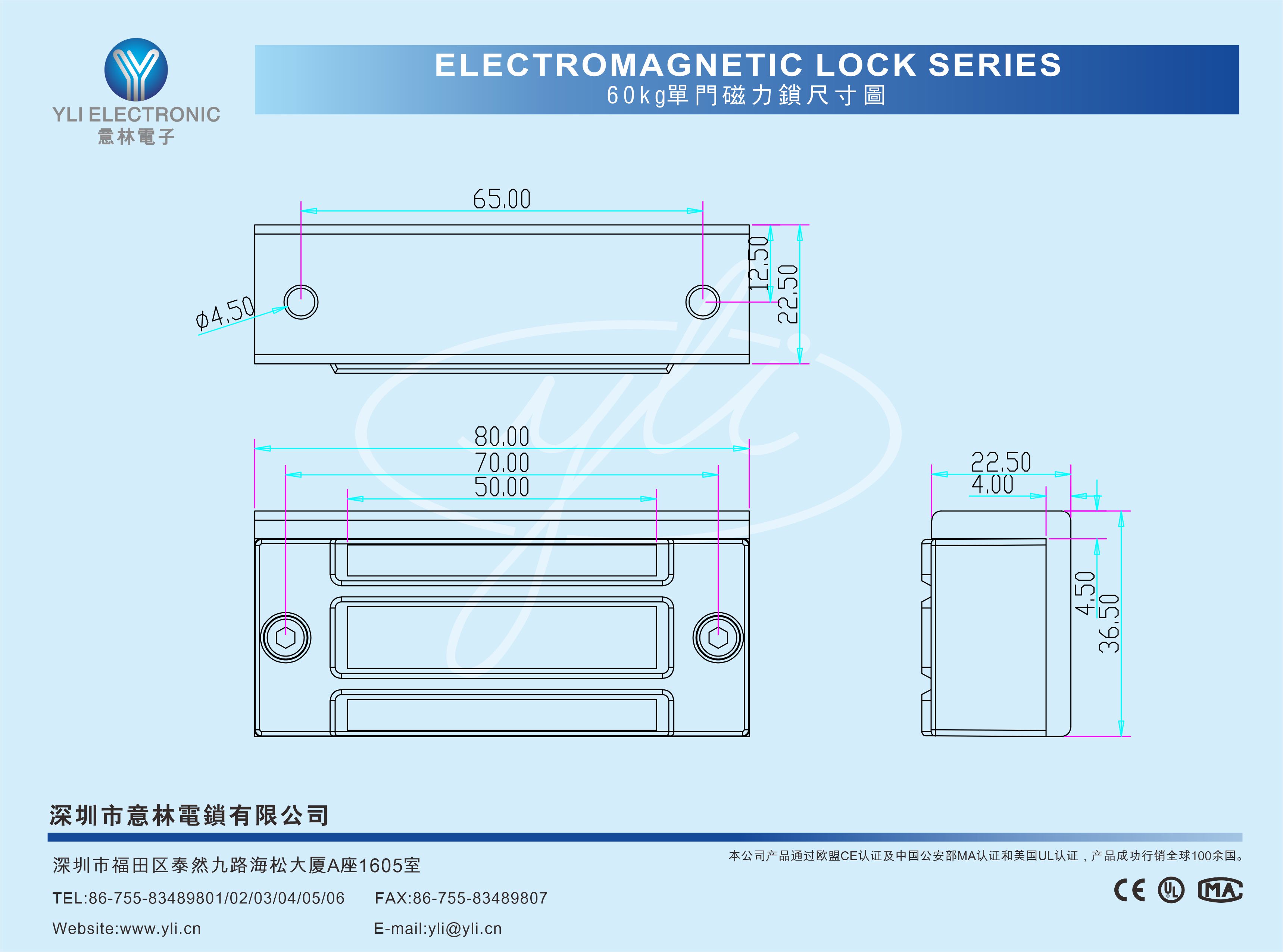 產(chǎn)品關(guān)鍵字: YM-60N YM-60N-S 迷你型磁力鎖